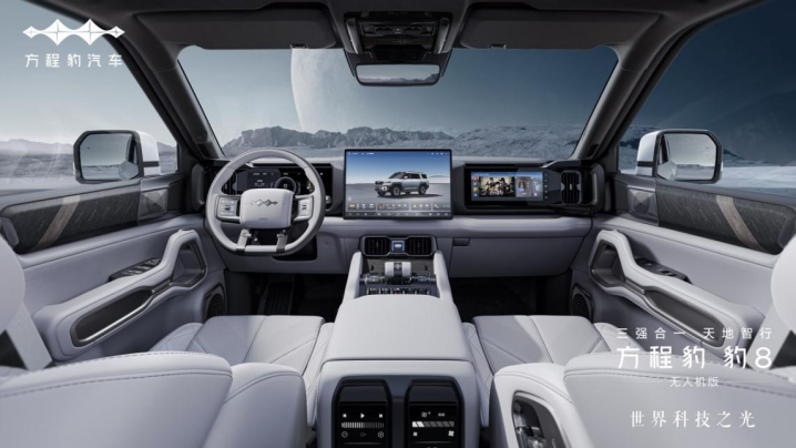 作为一台主打“星舰美学”的智能硬派SUV,豹8无人机版在外观上彻底颠覆传统越野车的粗犷印象。车顶的智能机库与4K超广角摄像头浑然一体,科技灰配色搭配棱角分明的机甲线条,仿佛从《星际穿越》中驶出的未来战车。而新增的“雪峰白”限定内饰,则以冰川为灵感,用极简设计与真皮、实木材质碰撞出独特的豪华质感——坐进驾驶舱的那一刻,荒野探险与都市格调竟能如此和谐共存。